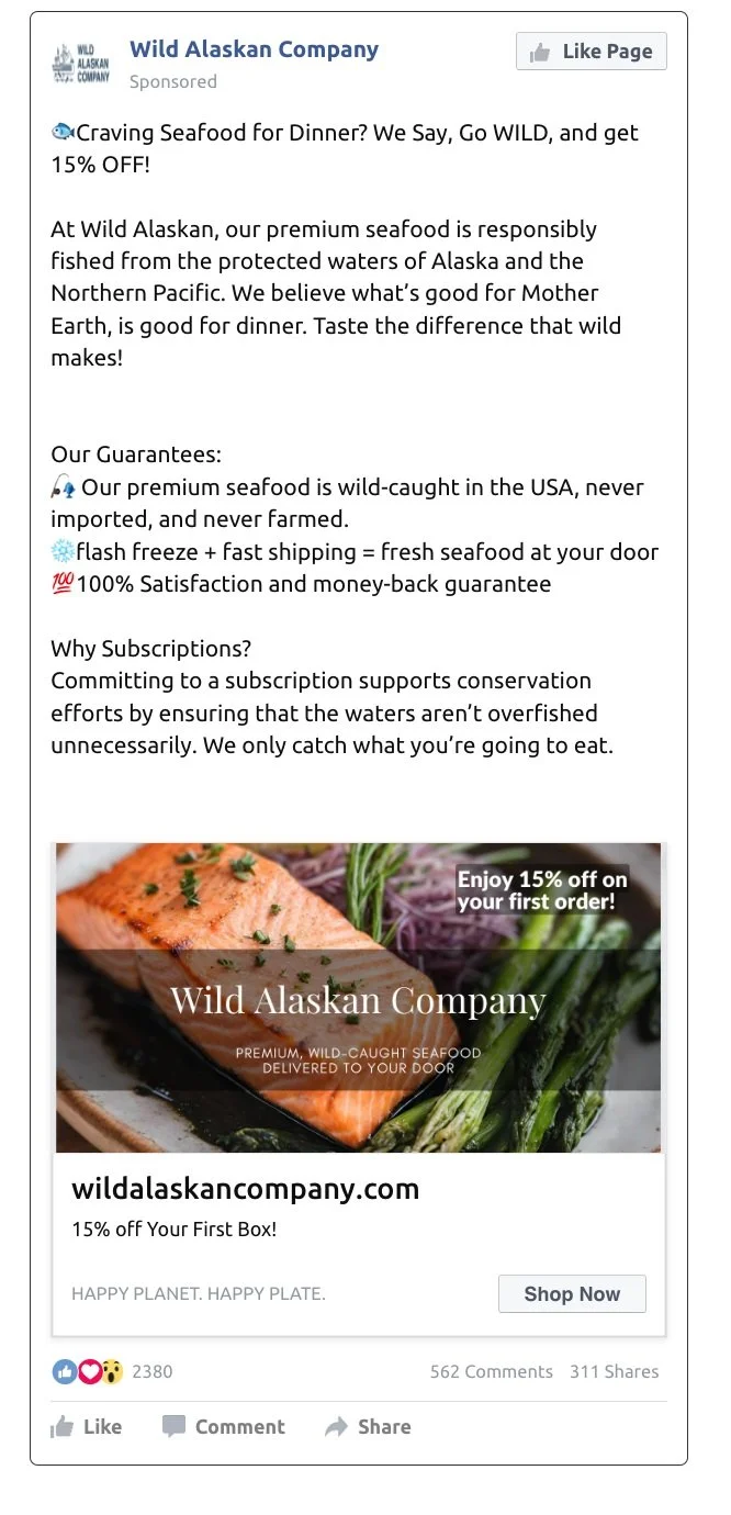 Strategy: Wild Alaskan Company offers a premium seafood subscription box that is responsibly sourced, and expertly prepared.